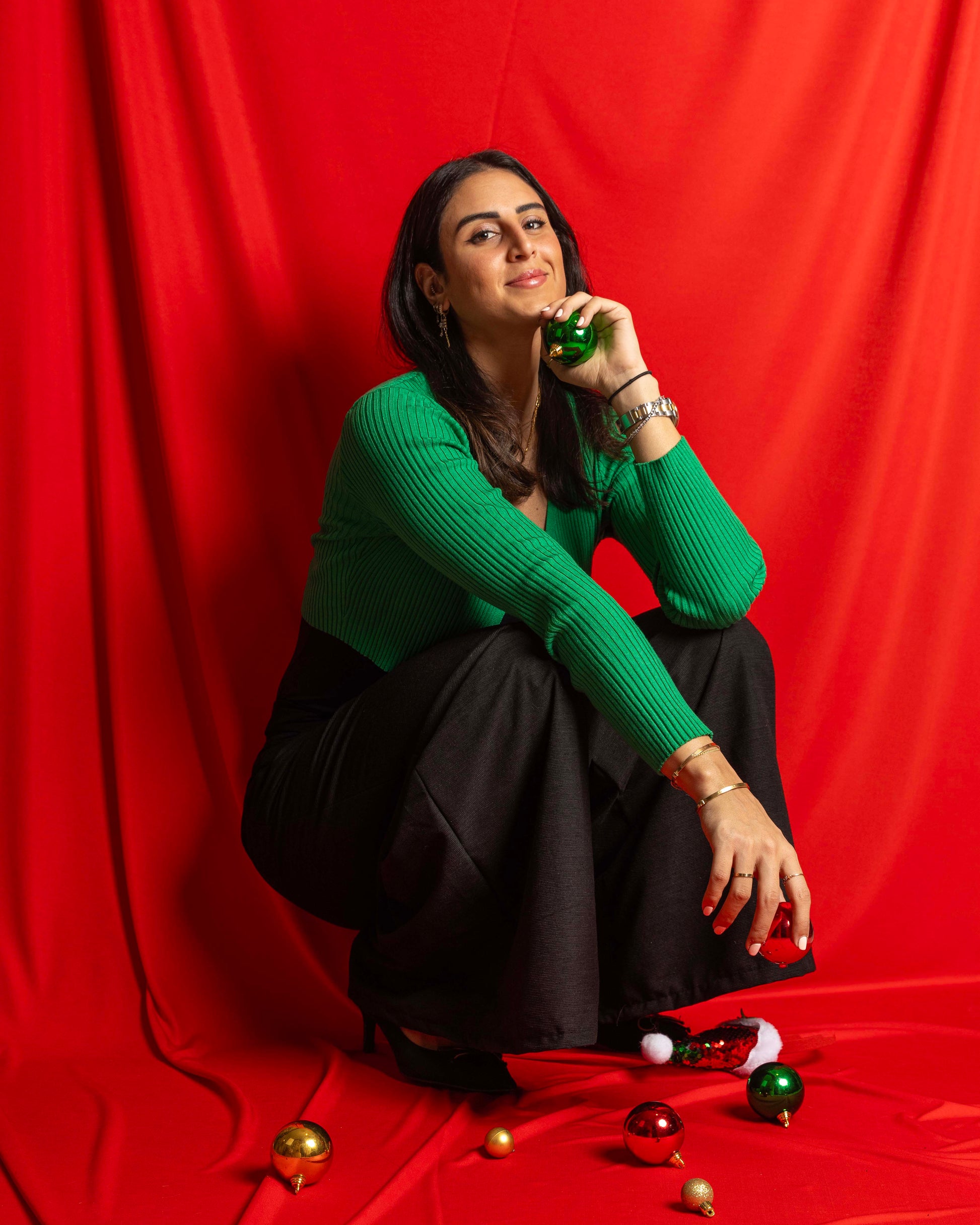 High-waist wide leg pants made of Katifa/ قطيفة مضلع.