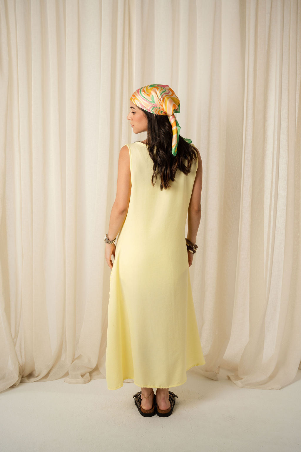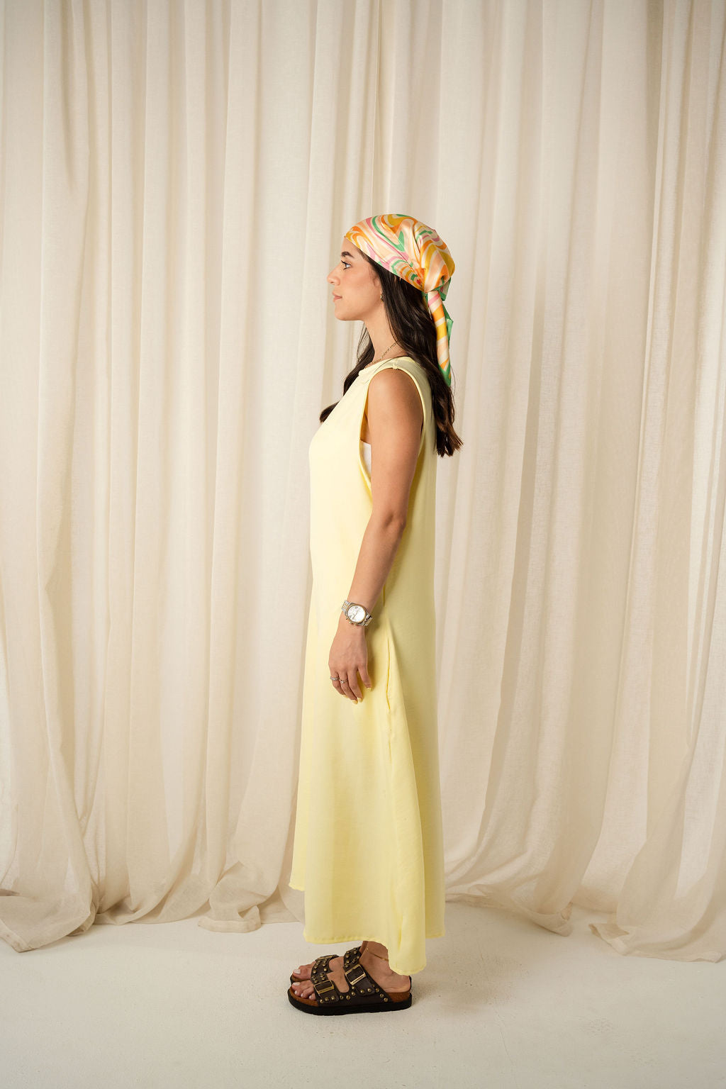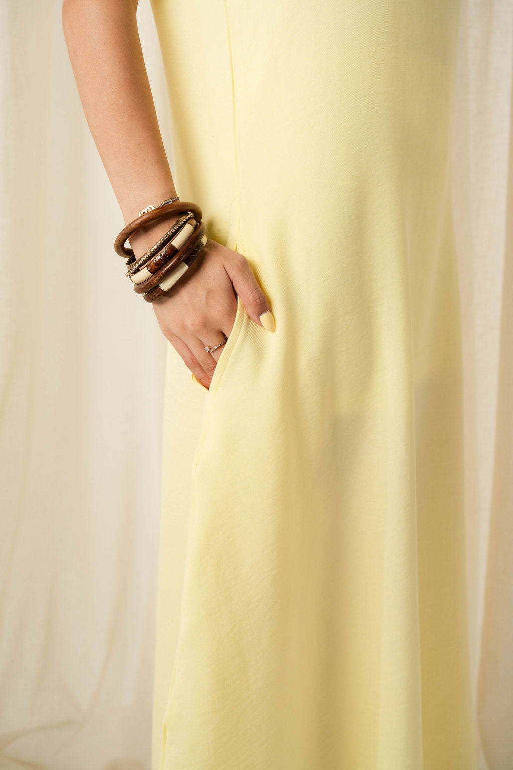 The Breezy Dress is your go-to for sun-drenched days and effortless moments. Crafted from breathable linen in a soft butter yellow hue, it’s flowy, flattering, and designed to move with you. Whether you wear it loose, belted, or layered, it’s made to suit your mood.